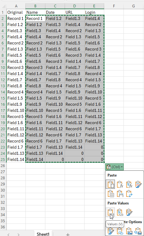 5. Select all, Copy and Paste Special as Text to remove the formulas and keep the data.