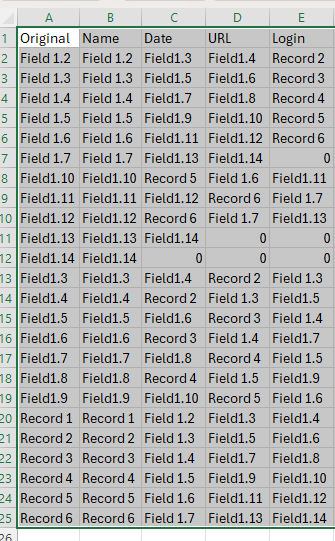 A client wanted to know if there was an easy way to fix the exported password records so he could import into another password app. While he could use Excel’s Transpose to fix it, that is a lot of cut and pasting when you have hundreds of records.