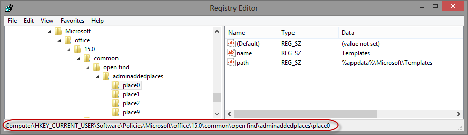 HKEY_CURRENT_USER\Software\Policies\Microsoft\office\15.0\common\open find\adminaddedplaces